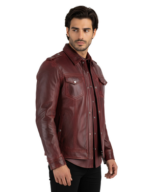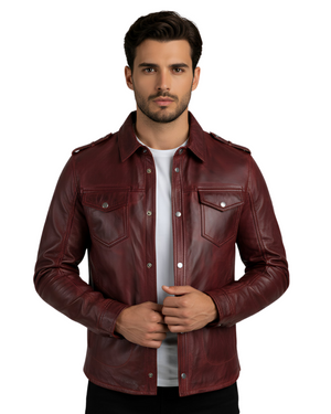 Discover the sophistication of our Leather Shirt Jacket for Men, expertly crafted from premium Nappa Sheepskin Leather.