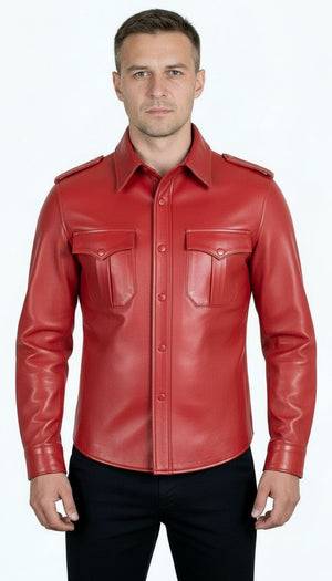 Mens Red Leather Uniform Shirt