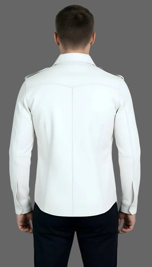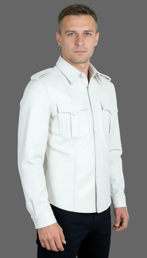 Mens White Leather Uniform Shirt